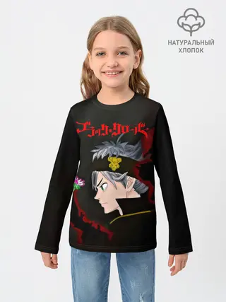 Детский лонгслив / Чёрный клевер Аста и цветок
