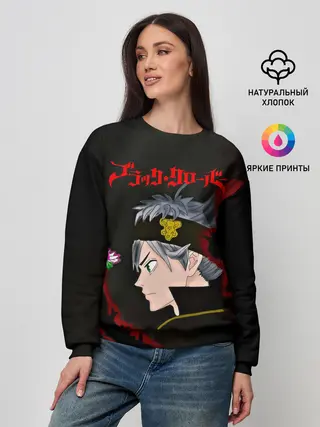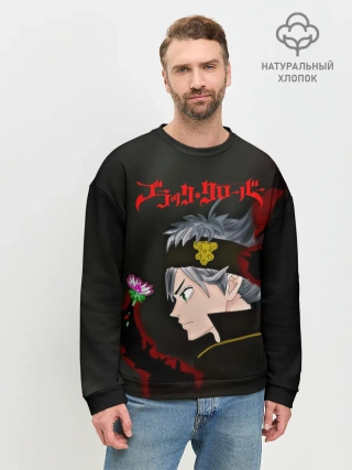 Мужской свитшот базовый / Чёрный клевер Аста и цветок