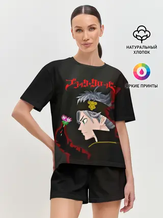 Женская футболка оверсайз / Чёрный клевер Аста и цветок