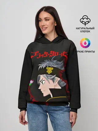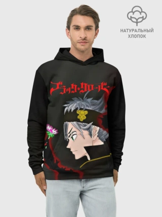 Худи мужской база хлопок / Чёрный клевер Аста и цветок
