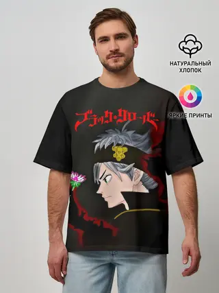 Мужская футболка оверсайз / Чёрный клевер Аста и цветок