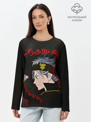 Лонгслив женский. Хлопок / Чёрный клевер Аста и цветок