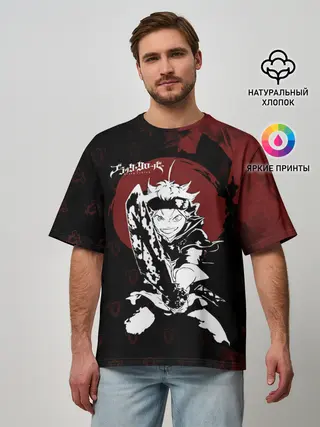 Мужская футболка оверсайз / Чёрный клевер Аста с мечом