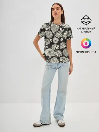 Женская базовая футболка / Белые цветы