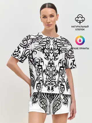 Женская пижама с шортами / ТАТУ ЧЕРНО БЕЛОЕ УЗОР