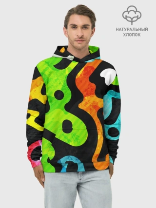 Худи мужской база хлопок / Разноцветные Кляксы Фигуры