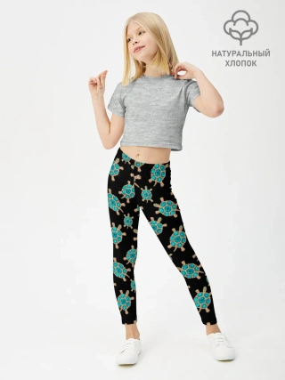 Леггинсы для девочки / Бирюзовые черепашки брошка