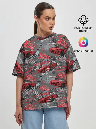 Женская футболка оверсайз / Гоночная машина