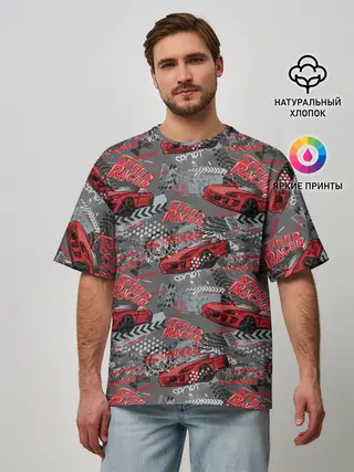 Мужская футболка оверсайз / Гоночная машина