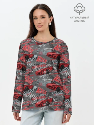 Лонгслив женский. Хлопок / Гоночная машина