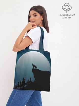 Рюкзак джинсовый / ВОЛК И ЛУНА 3D