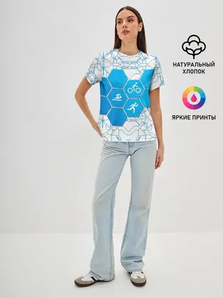 Женская футболка оверсайз / Плыви, Крути, Беги