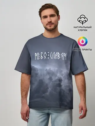 Мужская футболка оверсайз / НЕБО СЛАВЯН | СЛАВЯНСТВО