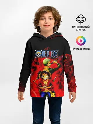 Худи мужской база хлопок / Зоро и Луффи в огне One Piece