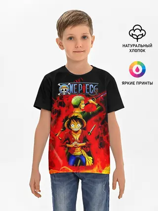 Детская базовая футболка / Зоро и Луффи в огне One Piece