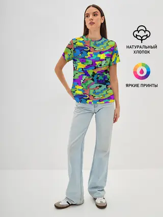 Женская базовая футболка / Камуфляж в ярких тонах