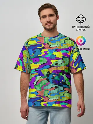 Мужская футболка оверсайз / Камуфляж в ярких тонах