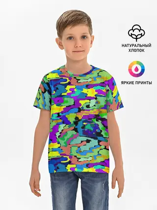 Детская базовая футболка / Камуфляж в ярких тонах