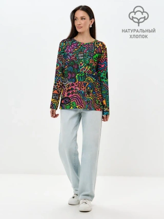 Лонгслив женский. Хлопок / Кислотные узоры психоделика
