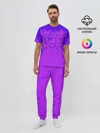 Мужская пижама с брюками / ROBLOX ФИОЛЕТОВЫЕ ПОДТЕКИ
