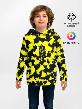 Худи мужской база хлопок / Черно-желтый камуфляж