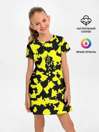 Женская футболка оверсайз / Черно-желтый камуфляж