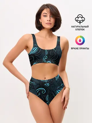Женские топ и трусы / Лазурные листья