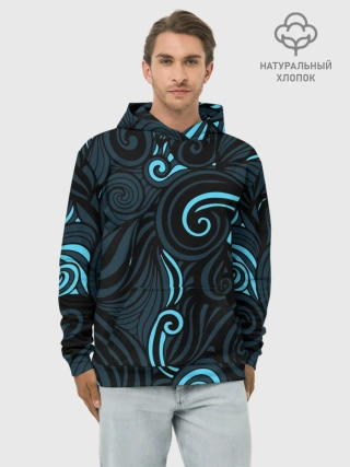 Худи мужской база хлопок / Лазурные листья