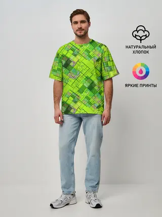 Мужская футболка оверсайз / Ярко-зеленый абстрактный узор