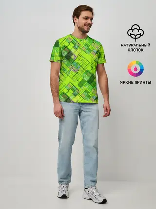 Мужская базовая футболка / Ярко-зеленый абстрактный узор