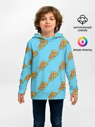 Худи мужской база хлопок / Пицца паттерн на голубом