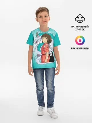 Детская базовая футболка / Тихиро и Хаку зеленый фон