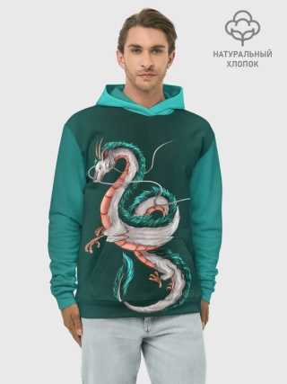 Худи мужской база хлопок / Дракон Хаку зеленый градиент