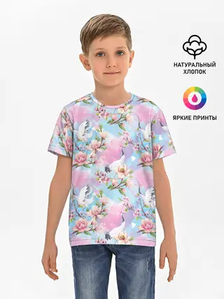 Детская базовая футболка / Узор с журавлями