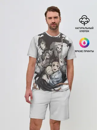 Мужской костюм с шортами / Kimetsu no Yaiba на сером