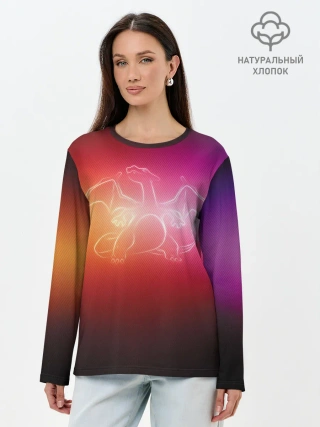 Лонгслив женский. Хлопок / Прозрачный Чаризард