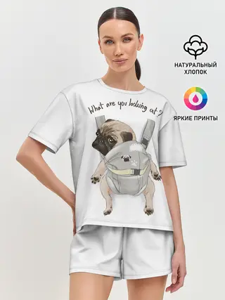 Женская пижама с шортами / Мопс в рюкзаке