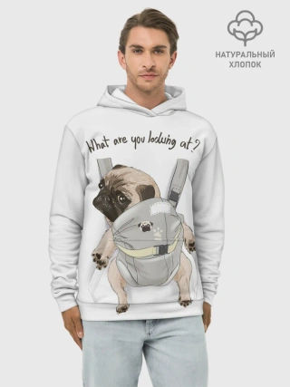 Худи мужской база хлопок / Мопс в рюкзаке