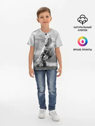 Детская базовая футболка / Белая лошадь