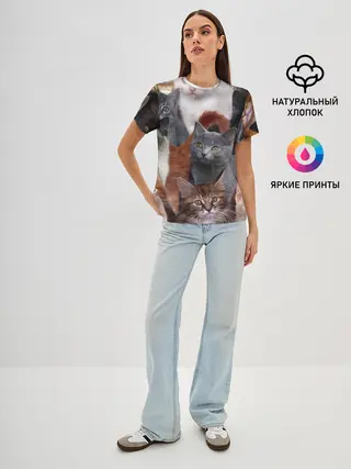 Женская базовая футболка / Много котов