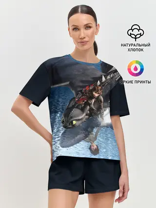 Женская футболка оверсайз / ночная фурия