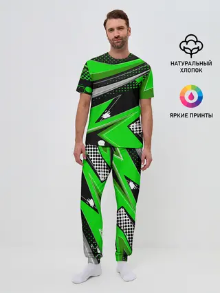Мужская пижама с брюками / Зеленая краска