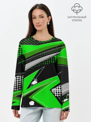Лонгслив женский. Хлопок / Зеленая краска
