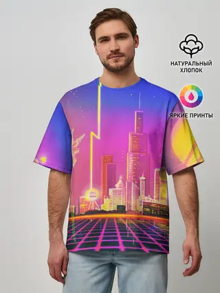 Мужская футболка оверсайз / КИБЕР ГОРОД