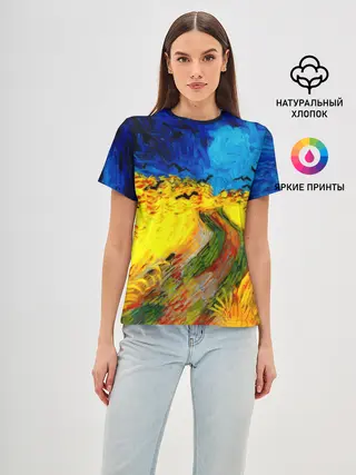 Женская базовая футболка / ВАНГОГ НОЧНОЕ ПОЛЕ