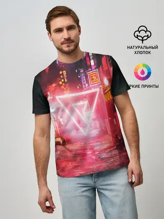 Мужская футболка оверсайз / КИБЕР НЕОН