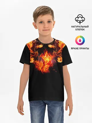 Мужская футболка оверсайз / Огненные цветы в темноте