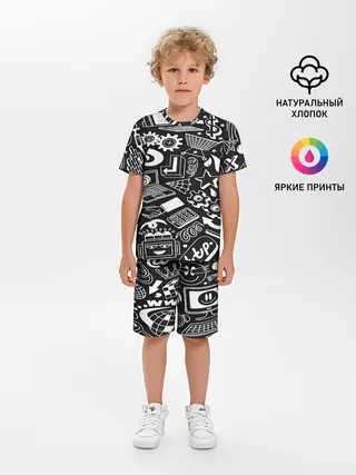 Актуальный дизайн, плотная ткань, сели отлично, хорошее качество На 122-128 взяли 134, ребёнок крепкий, но не полный. Крутой принт