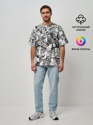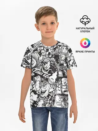 Актуальный дизайн, плотная ткань, сели отлично, хорошее качество На 122-128 взяли 134, ребёнок крепкий, но не полный. Крутой принт