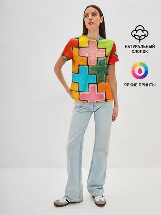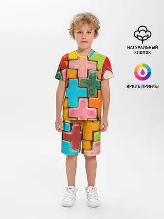 Актуальный дизайн, плотная ткань, сели отлично, хорошее качество На 122-128 взяли 134, ребёнок крепкий, но не полный. Крутой принт